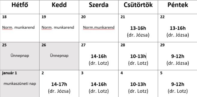 A meghosszabbított téli szünetben a budakalászi gyermekorvosok munkarendje a fentiek szerint alakul.