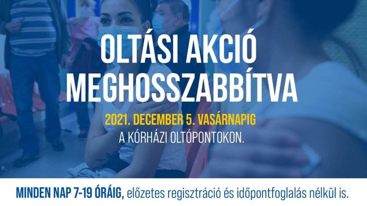 A nagy sikerre való tekintettel egy héttel meghosszabbította a kormány a november 22-én kezdődött Oltási akcióhetet, így az új időpont szerint december 5. vasárnap estig lehet a kórházi oltópontokon előzetes regisztráció és időpontfoglalás nélkül oltakozni. Az oltópontok minden nap reggel 7 és este 19 óra között vannak nyitva. A kórházak országszerte megemelt oltási kapacitással várják az érkezőket akár az első, az elmaradt második, vagy a harmadik oltásra. Az oltatlanok előzetes regisztráció nélkül is érkezhetnek az oltópontra, ez esetben regisztrációjukat a helyszínen végzik el. Akik időpontfoglalás nélkül érkeznek, azokat érkezési sorrendben fogják beoltani. Aki előzetesen regisztrált és foglalt az interneten időpontot az elkerülheti a várakozást.