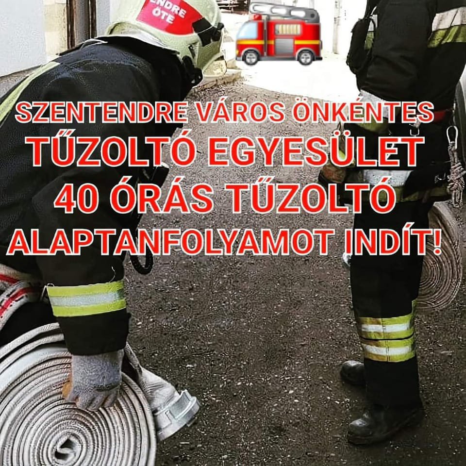 Szentendre Város Önkéntes Tűzoltó Egyesület 40 órás tűzoltó alaptanfolyamot indít a Pest Megyei Katasztrófavédelmi Igazgatóság, Szentendre Hivatásos Tűzoltó-parancsnokság, valamint a Katasztrófavédelmi Oktatási Központtal együttműködve. A képzés célja, hogy felkészítse a jelentkezőket az alapvető tűzoltási, mentési feladatok biztonságos és szakszerű végrehajtására, a beosztott tűzoltói feladatokra – olvasható a szervezet közösségi oldalán.