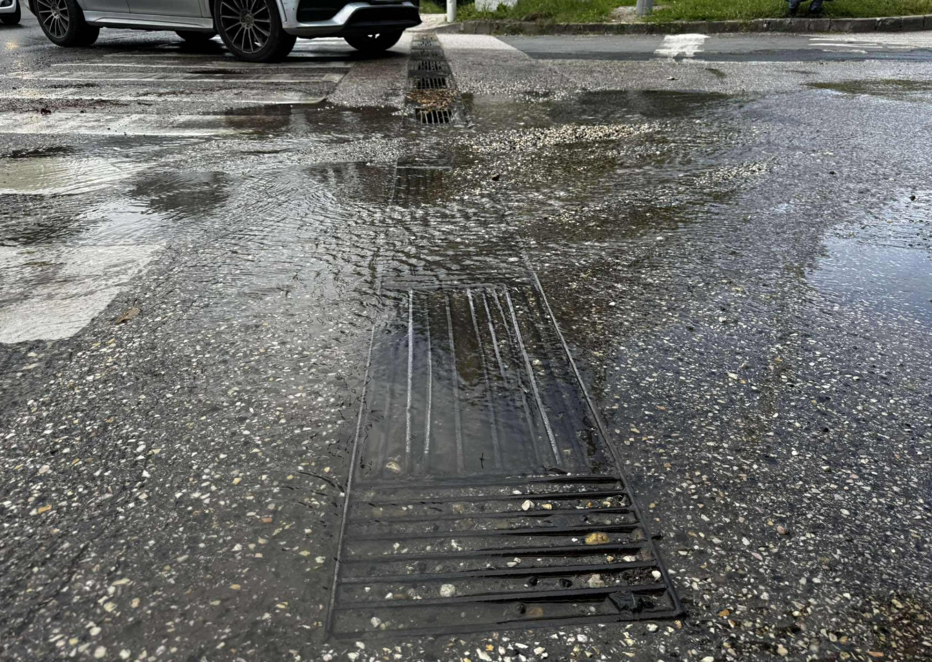 A Cseresznyés út 60. szám előtt történt csőtörés miatt a 11-es útig folyik a víz.