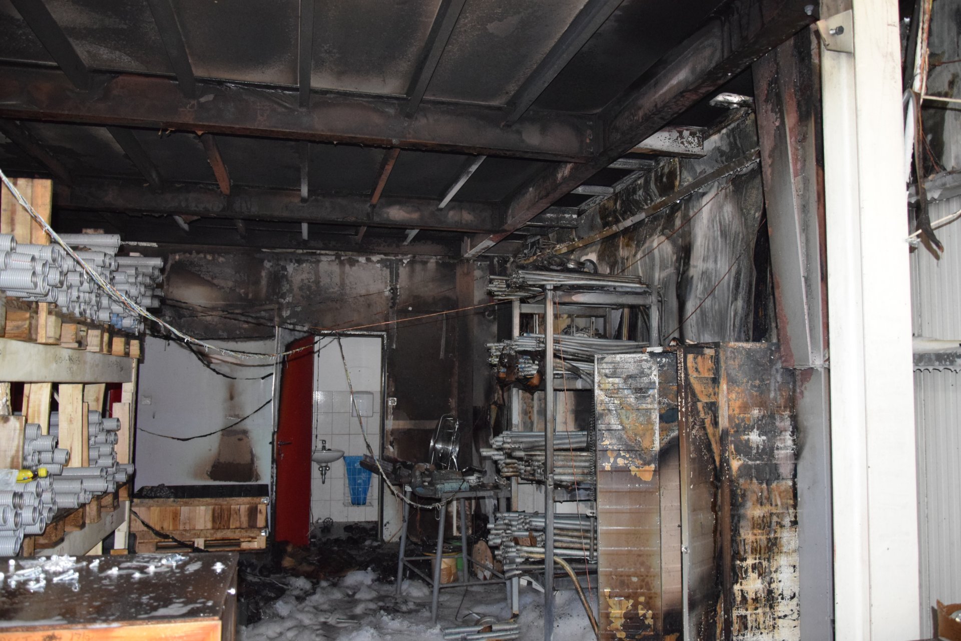 Tűz keletkezett egy ezerkettőszáz négyzetméteres, két szintes csarnoképület földszintjén, kedden délelőtt Pomázon, a Céhmester utcában. Az épület alsó részében fémipari üzem működött, a százötven négyzetméteren égő tűz innen terjedt tovább a csarnok felsőrészében kialakított iroda helyiségeire.