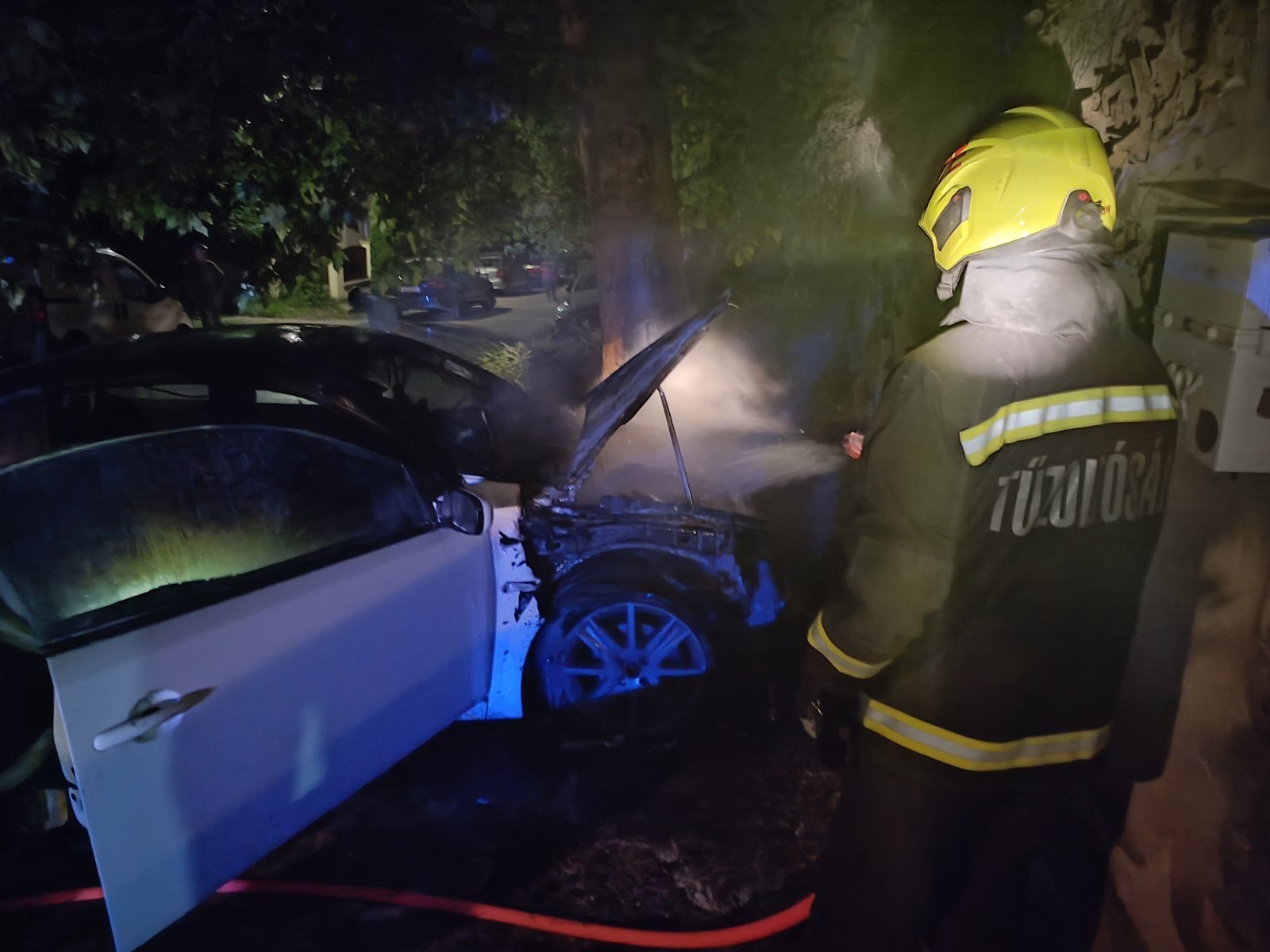 Kigyulladt egy gépkocsi hétfőn éjszaka Budakalászon, a Sólyom utcában. A tűz átterjedt az égő autó mellett álló másik gépkocsira is. A tüzet a szentendrei hivatásos tűzoltók két vízsugárral eloltották, a felhevült fém alkatrészeket visszahűtötték, majd átvizsgálták a kiégett járműveket. A két jármű egy autószerelő műhely előtt állt.