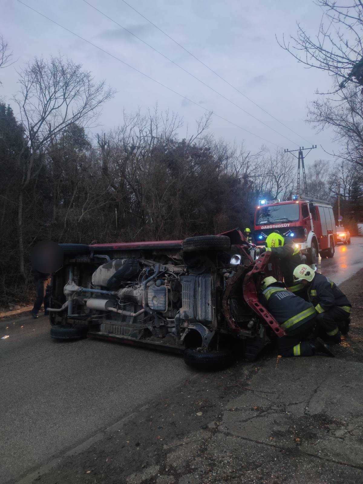 Oldalára borult egy gépkocsi pénteken délután Szentendrén, a Barackvirág utcában. A felborult autó forgalmi akadályt okozott, a gépkocsiban egy ember utazott, aki önerejéből elhagyta a személyautót. A szentendrei hivatásos tűzoltók átvizsgálták, majd a kerekeire állították és áramtalanították a járművet, megszüntették a forgalmi akadályt. A műszaki mentés ideje alatt az érintett útszakaszt lezárták.