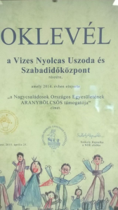A tavalyi évben nyújtott támogatásáért a V-8 Uszoda és Szabadidőközpont elnyerte a Nagycsaládosok Országos Egyesületének Aranybölcsős támogatója' címet.