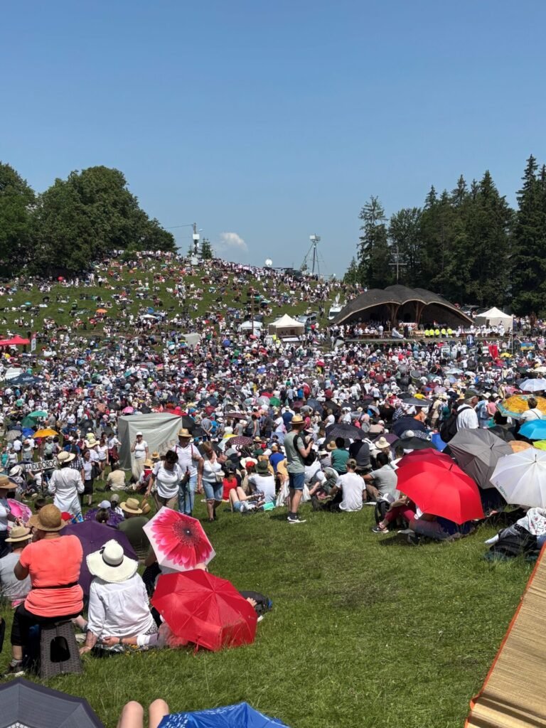 A csoport másik része pénteken buszos kirándulást tett a Gyilkos-tóhoz és a Békás-szoroshoz. Az utazás a lenyűgöző erdélyi tájakon minden résztvevő számára emlékezetes élményt jelentetSzombaton került sor a zarándoklat fő eseményére, a szentmisére a csíksomlyói nyeregben, amelyre több busszal indultak a zarándokok korán reggel Lövétéről. Az erős hőség ellenére mindenki sikeresen feljutott a nyeregbe, hogy együtt vehessen részt a szertartáson. A csodás élményt szerettük volna megörökíteni, így a csoport közös fényképet is készített a budakalászi zászlóval, háttérben pedig a Hármashalom oltárral (kieVasárnap a csapat Lövétén ünnepi pünkösdi szentmisén vett részt, amelyet a lövétei származású Fazakas Zoltán Márton csornai premontrei apát mutatott be.