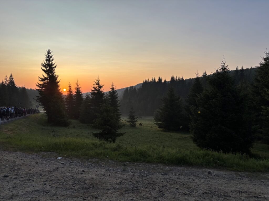 Másnap reggel a zarándokcsapat öt tagja vállalkozott arra, hogy részt vegyen a hagyományos, lövétei szervezésben zajló gyalogos zarándoklaton. A körülbelül 45 km-es út a lövétei templomtól áldással indult és másnap a csíksomlyói nyeregben ért véget. A zarándokok egy éjszakát a hargitai erdőben, nomád körülmények között töltöttek.
