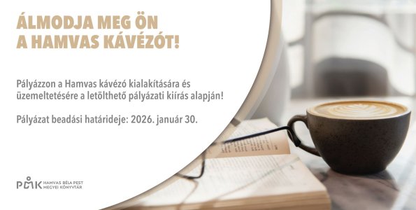 A Hamvas Béla Pest Megyei Könyvtár és a Szentendrei Kulturális Központ pályázatot hirdet a könyvtár területén büfé létrehozására és részleges üzemeltetésére, helyiségbérleti szerződés keretében. A pályázatok benyújtásának határideje 2026. január 30., péntek. - olvasható a szentendre.hu-n.