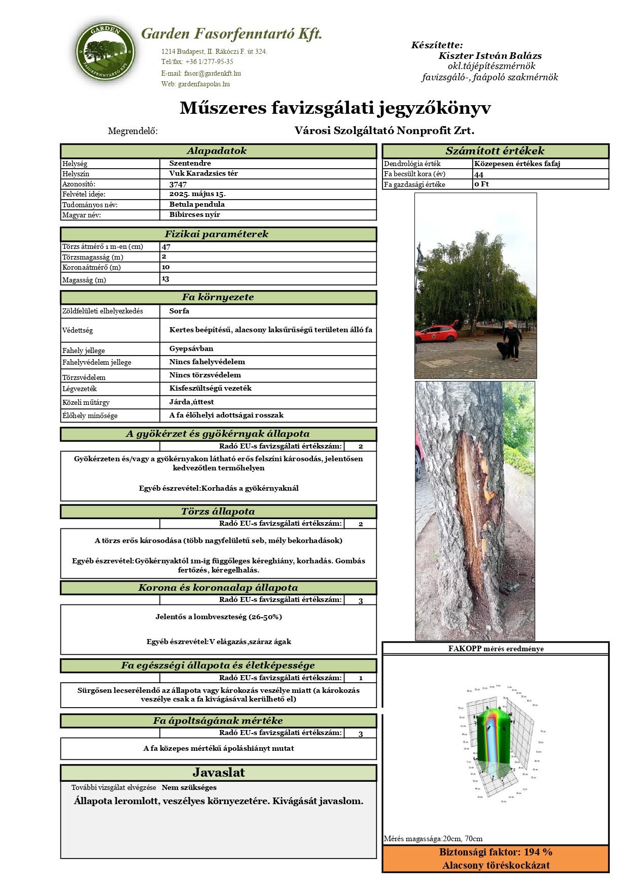 Több esetben műszeres Fakopp-vizsgálat is készült a beteg fákról. A szakértői jelentések állapították meg például az Apor hídnál található nyírfáról és a Bükkös patak – 11-es út találkozásához közel lévő nagy hársfáról is, hogy menthetetlenül korhadtak, kivágásra javasoltak balesetveszélyességük miatt. A kivágás előtt a Városi Szolgáltató munkatársai minden egyes érintett fát előzetesen átvizsgáltak annak érdekében, hogy megbizonyosodjanak arról, nem található rajtuk fészek, illetve nincsenek bennük költő madarak.