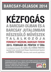 A Barcsay Díjban és a Barcsay jutalomban részesülő művészek találkozója lesz 2015. február 20-án 17 órakor a Ferenczy Múzeum, Barcsay termében.