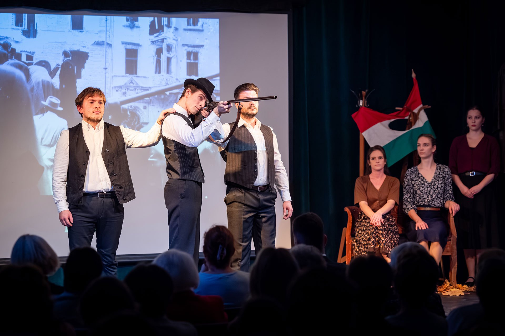A Kós Károly Művelődési Ház, a Kalász Alapfokú Művészeti Iskola és a Lenvirág Táncegyüttes közreműködésével színvonalas, színházi hangulatú műsort láthatott a közönség. A darab egy fiatal pár történetén keresztül, zenével és tánccal idézte meg az ’56-os események drámai pillanatait.