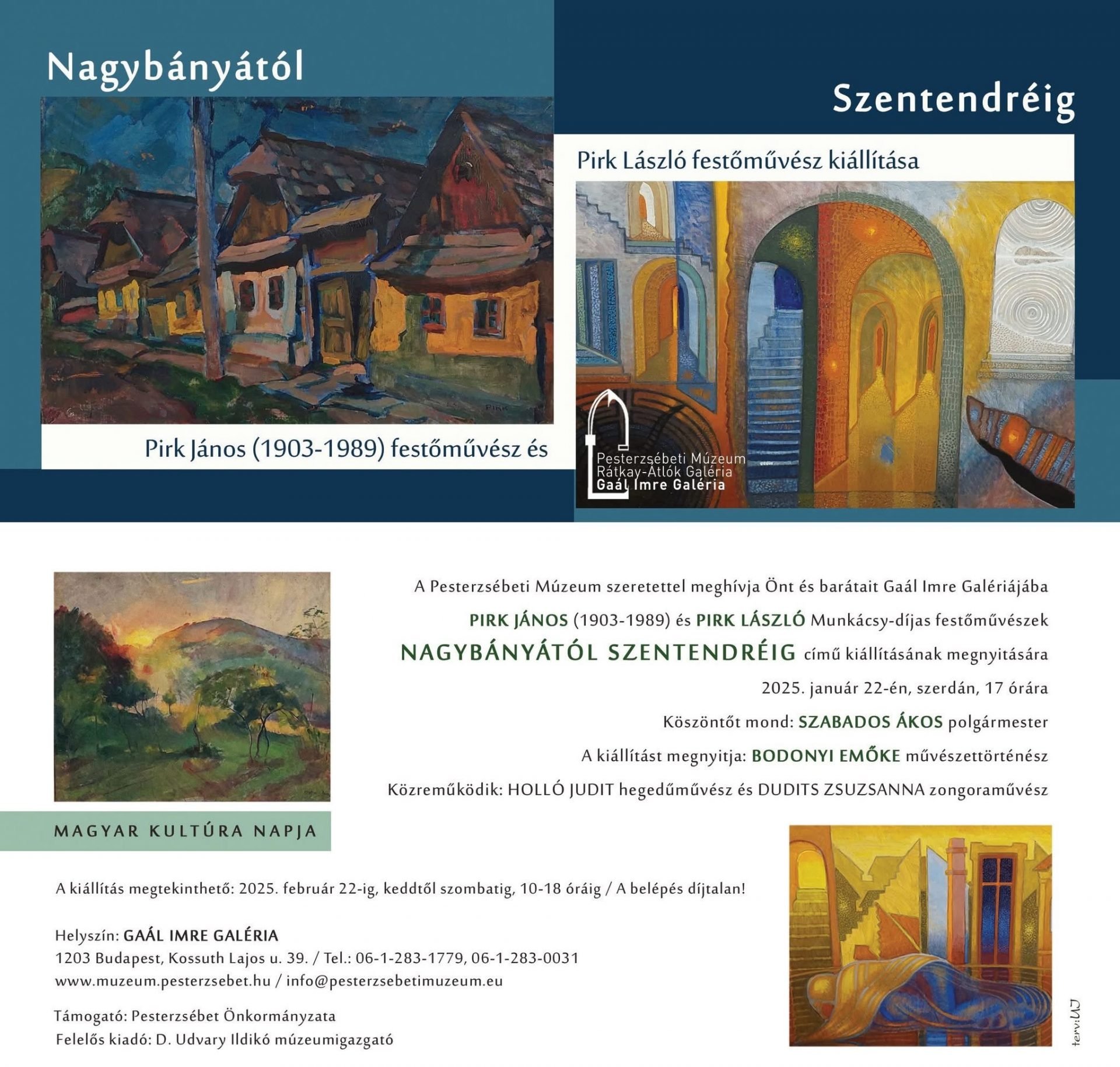 A Pirk János Múzeum és a Pirk család szeretettel várja az érdeklődőket Pirk János és Pirk László közös, Nagybányától Szentendréig című kiállításának megnyitójára a Pesterzsébeti Múzeum Gaál Imre Galériájában.