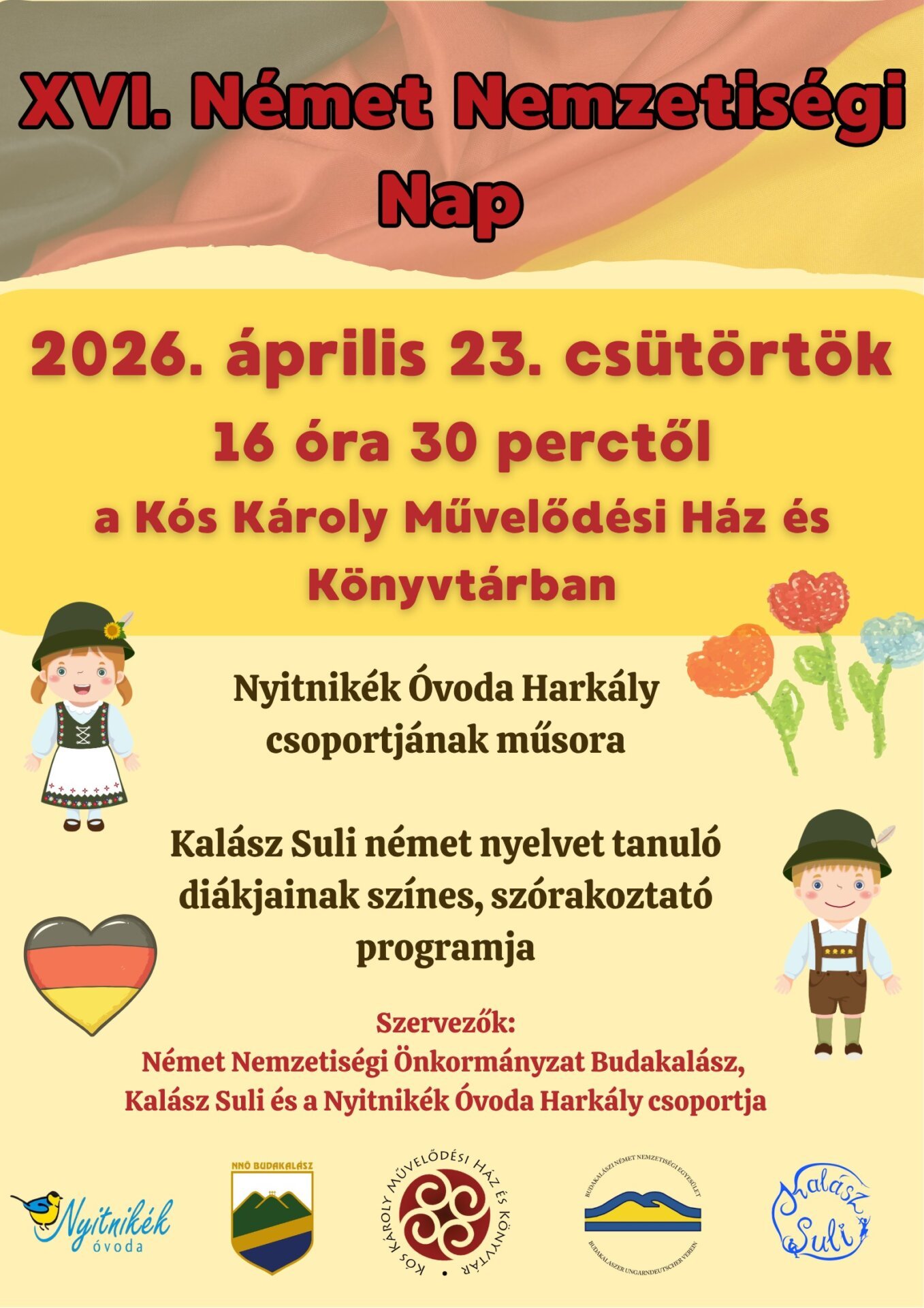 Az ünnepségen a németül tanuló kalász sulis diákok, valamint a Nyitnikék Óvoda Harkály csoportja lép színpadra. A rendezvény látogatása díjmentes.