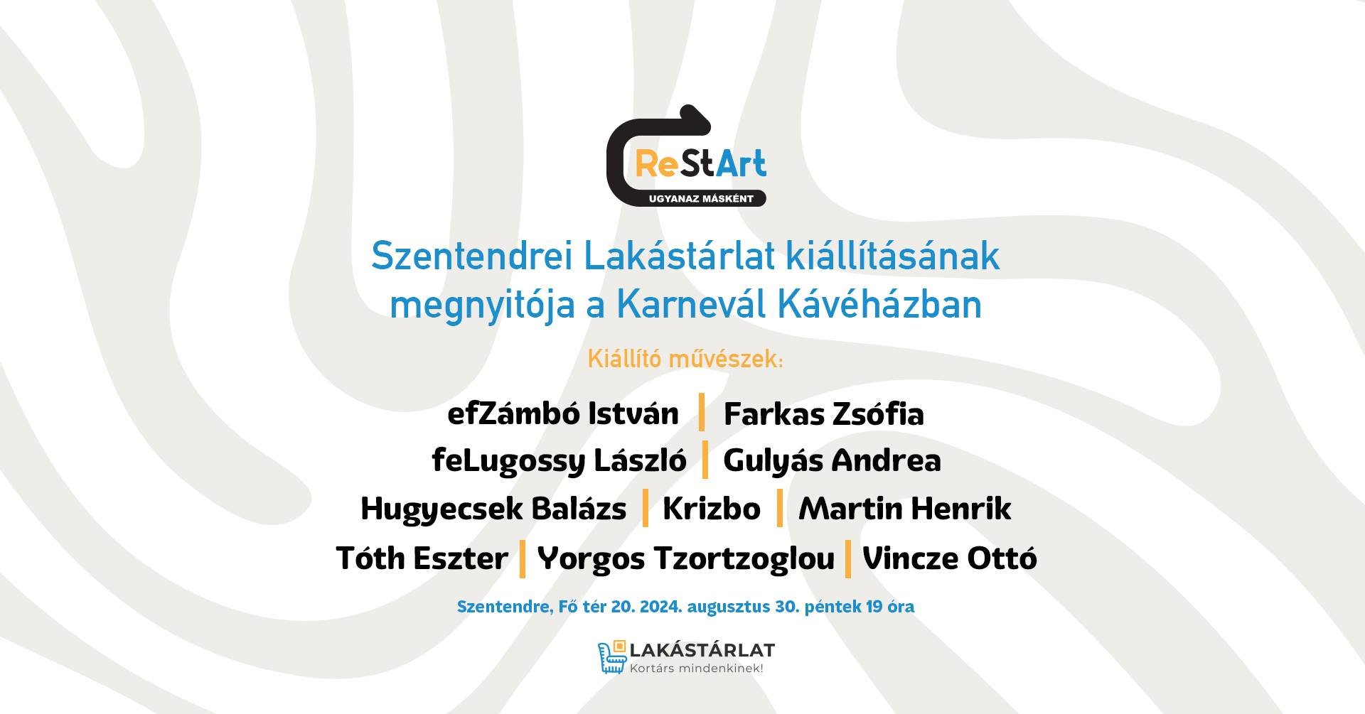 A Szentendre Éjjel-Nappal Nyitva fesztivál keretén belül megrendezésre kerül a ReStArt című kiállítás aminek a megnyitója a Karnevál Kávéház és Gasztrobárban tartanak majd meg.