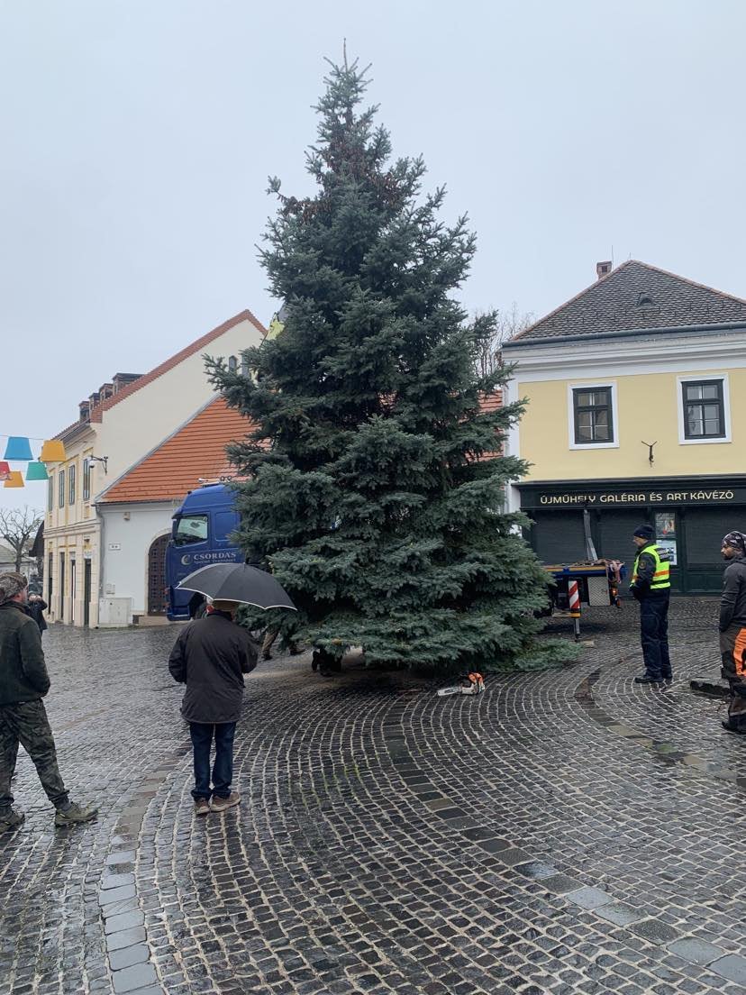 Felállították Szentendre karácsonyfáját a város főterén. Advent első vasárnapján már teljes pompájában gyönyörködhetnek benne az arra sétálók.