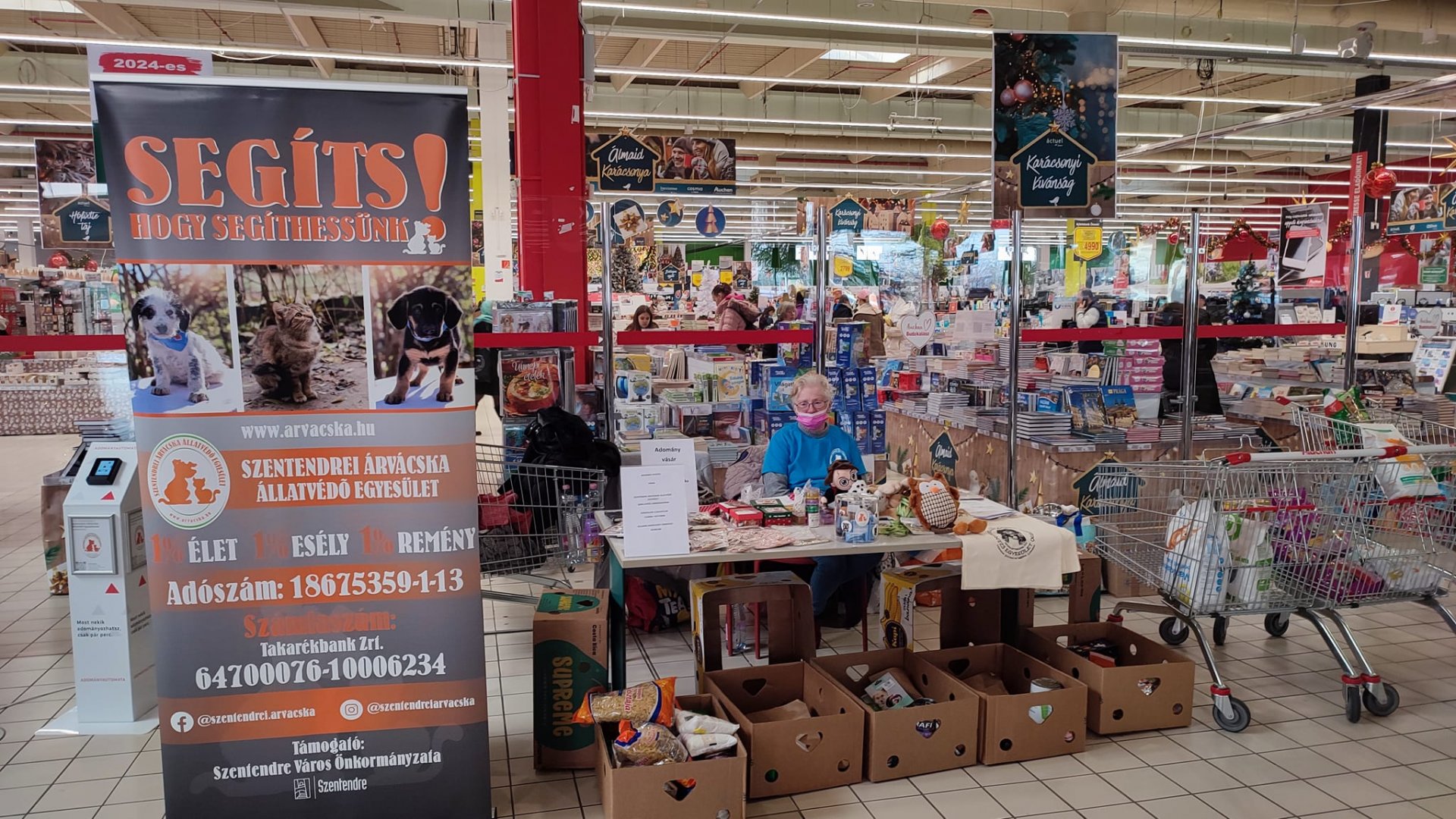 Szombaton az óbudai Auchan üzletben 460 kg, vasárnap pedig a budakalásziban 600 kg kutya- és macskatápot, illetve tisztítószereket adományoztak a vásárlók.