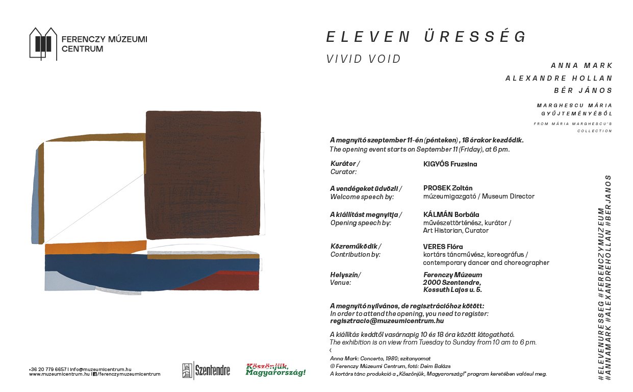 Eleven üresség - Részlet Marghescu Mária gyűjteményéből címmel nyílik kiállítás a szentendrei Ferenczy Múzeumi Centrumban (FMC) pénteken Anna Mark, Alexandre Hollan és Bér Sándor munkáiból.