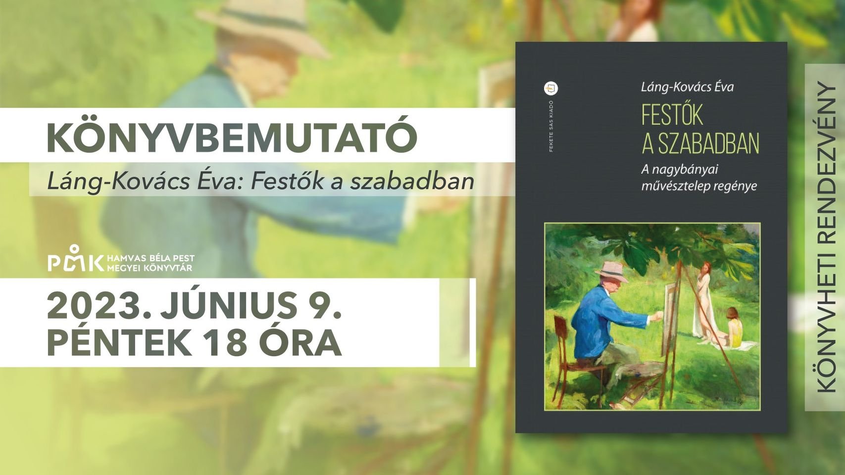 Láng-Kovács Éva Festők a szabadban című könyvét mutatják be június 9-én a Hamvas Béla Pest Megyei Könyvtárban – olvasható az intézmény közösségi oldalán.