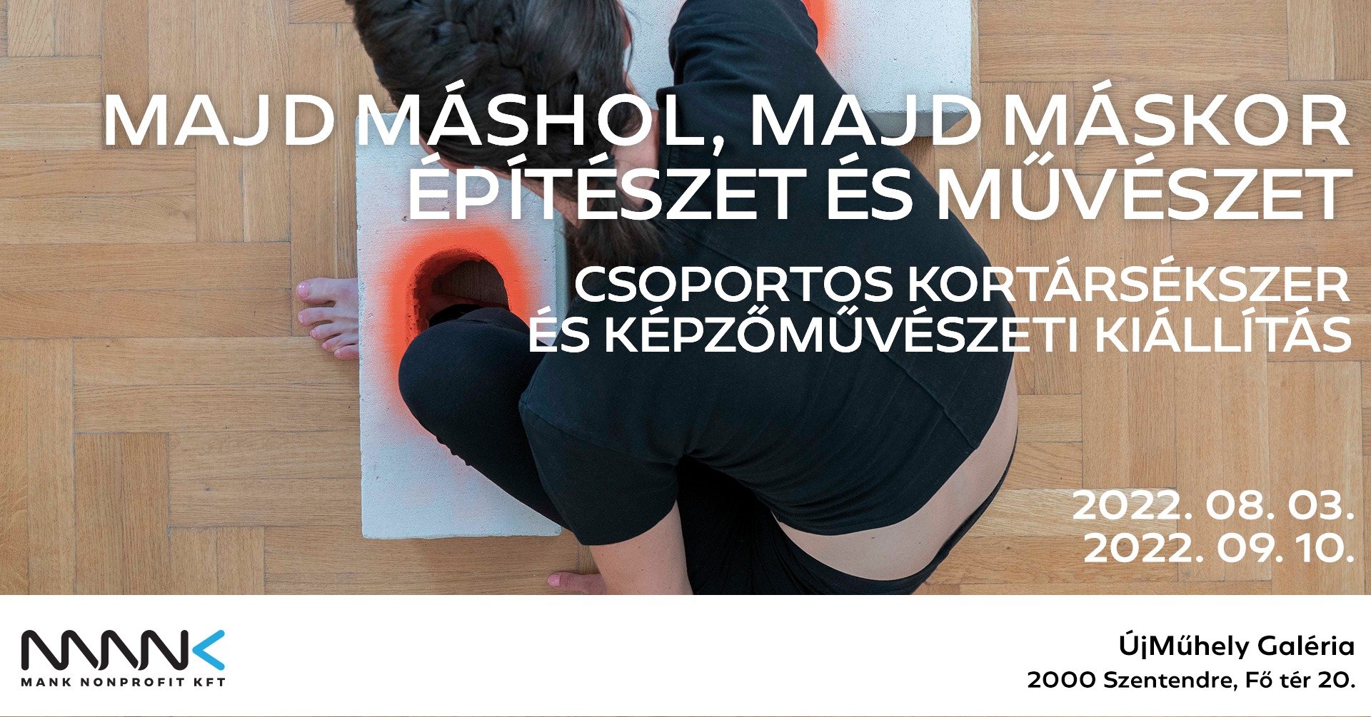 A MANK Magyar Alkotóművészeti Közhasznú Nonprofit Kft. „Majd máskor, majd máshol – építészet és művészet” csoportos kortársékszer- és képzőművészeti kiállítás megnyitójának időpontja: augusztus 3., szerda 18:00, helyszíne: ÚjMűhely Galéria, 2000 Szentendre, Fő tér 20.