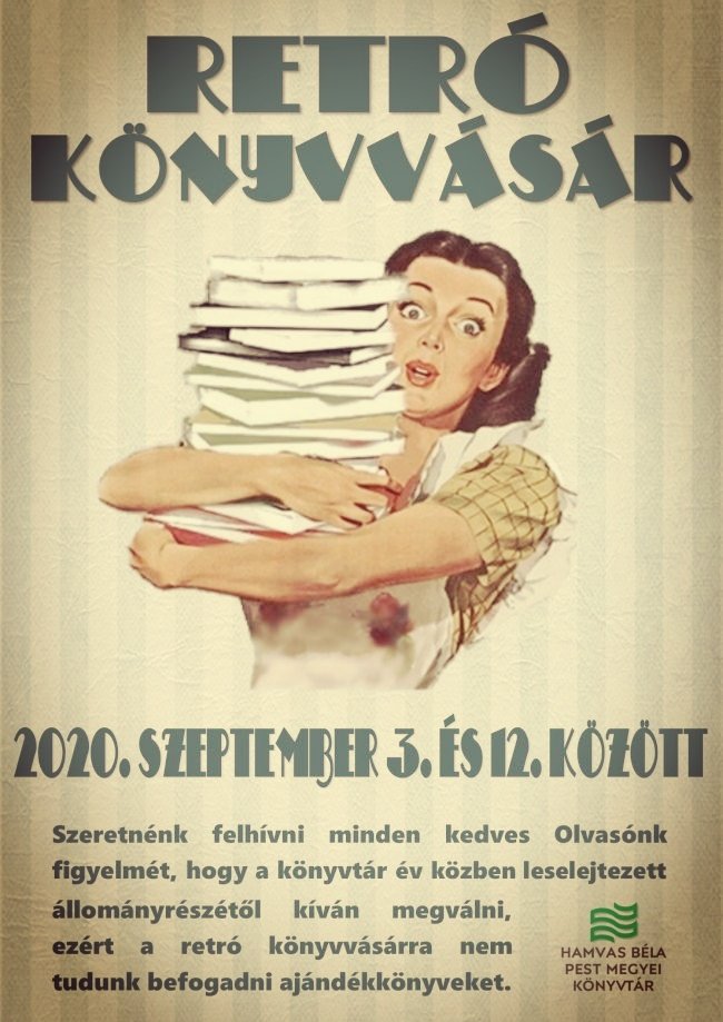 Retró könyvvásárt tart a Hamvas Béla Pest Megyei Könyvtár 2020. szeptember 3. és 12. között.