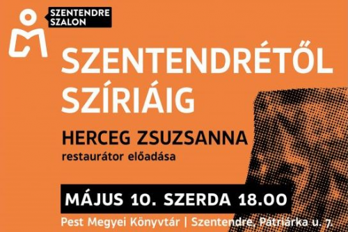Mindenkit várnak a Pest Megyei Könyvtárba május 10-én, szerdán 18:00-kor a Szentendre Szalon következő eseményére. Herceg Zsuzsanna restaurátor Szentendrétől Szíriáig címmel tart előadást.