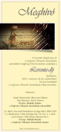 Ma este adják át a Levente-díjat, melyet minden esztendőben a Vujicsics Tihamér Zeneiskola egy kiemelkedő teljesítményű diákja kaphat meg.