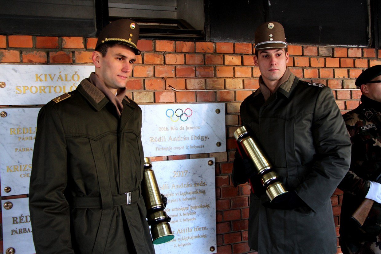 Az alakulat parancsnoka a vízilabda-válogatott és a vívósport érdemeit emelte ki beszédében, majd példaként állította a két sportolót a felsorakozott honvéd altisztjelöltek előtt. "Küzdeni, erősen. A sportolók jó példák önök előtt, hogyan lehet kimagasló eredményeket elérni. A katonának is kiválónak kell lennie, hiszen a hazaszeretetnek mindig nagyon magas lángon kell lobognia. A sport pedig kiváló lehetőség, hogy fizikailag felkészüljenek a haza védelmére" - idézte őt a közlemény.