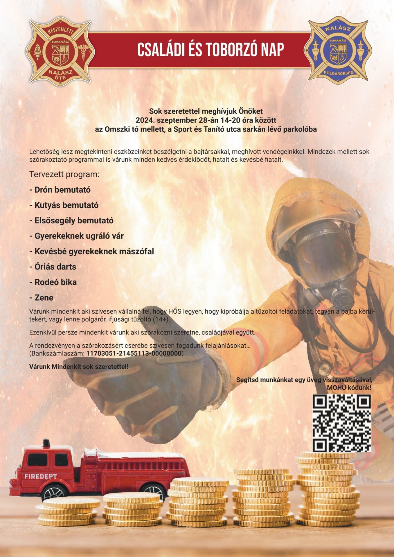 Családi és toborzó napot szervez a Budakalászi Készenléti Önkéntes Tűzoltó és Önkéntes Mentőszervezet, Polgárőrség SZEPTEMBER 28-án délután 14 órától az Omszk-tó mellett - olvasható a hivatalos facebook oldalukon.