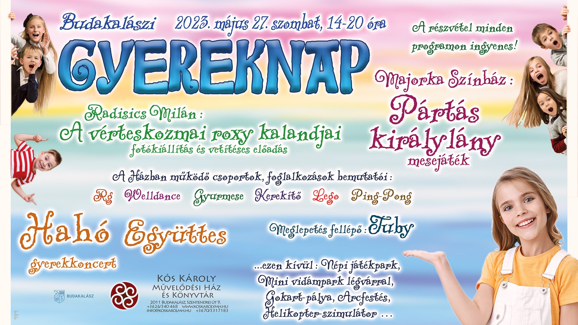 Május 27-én szombaton 14 órától a Faluház idén is izgalmas, játékos programokkal és sok meglepetéssel vár minden érdeklődőt a gyereknapi rendezvényére.