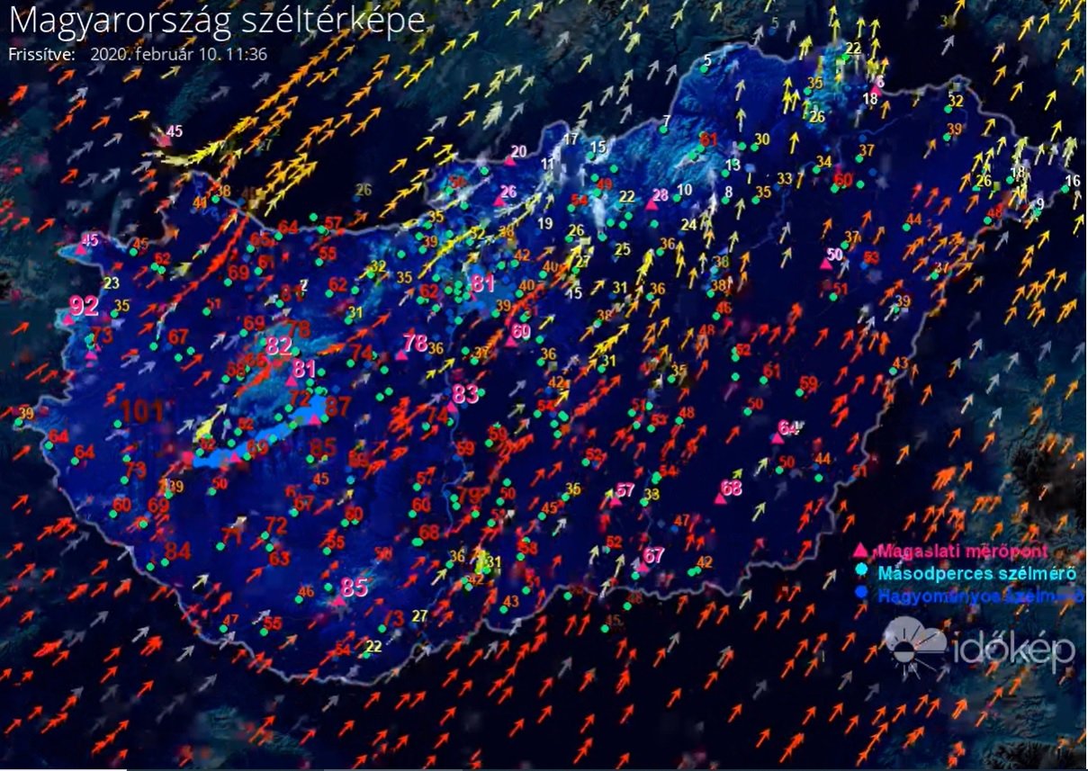 Sopronban 106 km/h-s széllökésről számolt be az időkép.hu, de Zalaegerszegen és Pécsen is meghaladta a 90km/h sebességet a szélvihar.