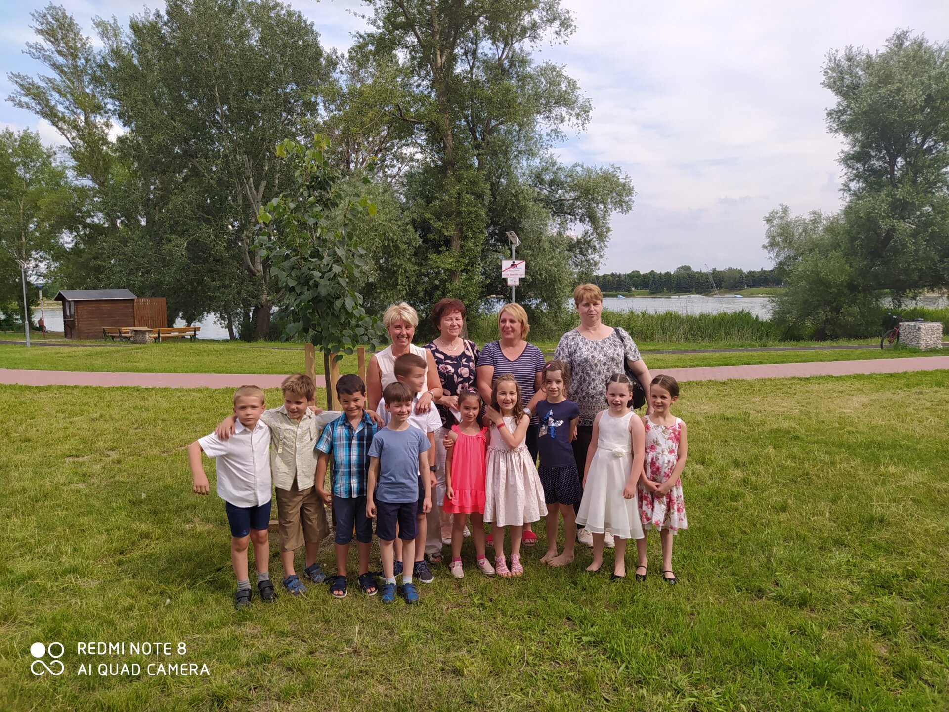 A Nyitnikék Óvóda Süni csoportjából idén elballagó gyerekek, családjaik és az óvónénik azért gyűltek össze tegnap délután az Omszk park, Tanító utca felöli északi sarkánál, hogy egy hársfacsemetét ültessenek az óvodában eltöltött évek emlékére, amely szimbolizálja összetartozásukat, Budakalászhoz való kötődésüket, a közösen eltöltött és most lezáruló korszakot, a jövőbe vetett bizalmat, amivel a gyerekek új feladataik elé állnak a nyár elmúltával – immár kisiskolásként. Miután a fát az Önkormányzat részéről jelen lévő Fetterné Ferenczy Beatrix (Környezetvédelmi és Rendészeti Iroda) véleménye szerint szakszerűen elültették, a gyerekek gondosan meglocsolták azt, és törzsénél jelükkel festett kövekkel díszítették.