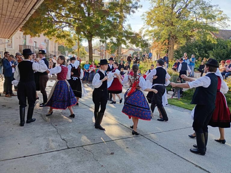 A Szüretzáró mulatságot Petőfi téri táncházzal kezdődött, majd a táncosok és a közönség átsétált a Kós Károly Művelődési Ház és Könyvtárba, ahol egy vajdasági táncegyüttes folytatta a műsort a Faluház első parkolójában.