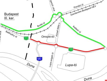 A kerékpárúton 2018. október 14 – november 30-ig, a Békásmegyertől az Kalászi útig(benzínkútig) terjedő 3,6 kilométer hosszú részen szakaszos lezárásra lehet számítani. A térképen a javasolt alternatív út is látható. Az aszfaltozás idejére két héten át teljes útzár várható.
