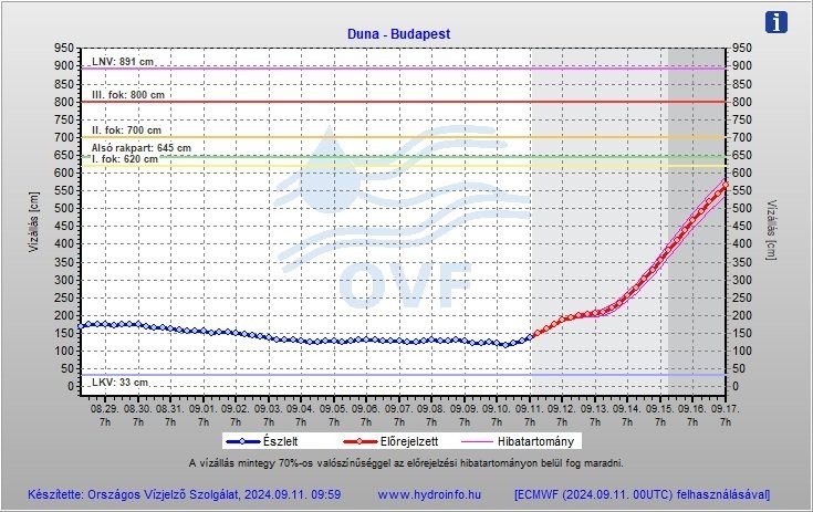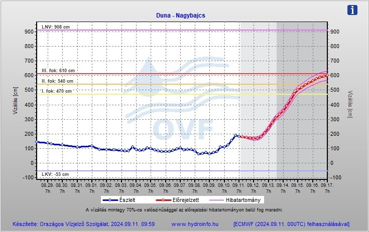 Áradni fog a Duna is: Nagybajcsnál a jövő hét elején harmadfokú készültségi szintet elérő vízállás jöhet, de a fővárosban is kb. 4 méterrel emelkedhet a folyó vízszintje hétfőig.