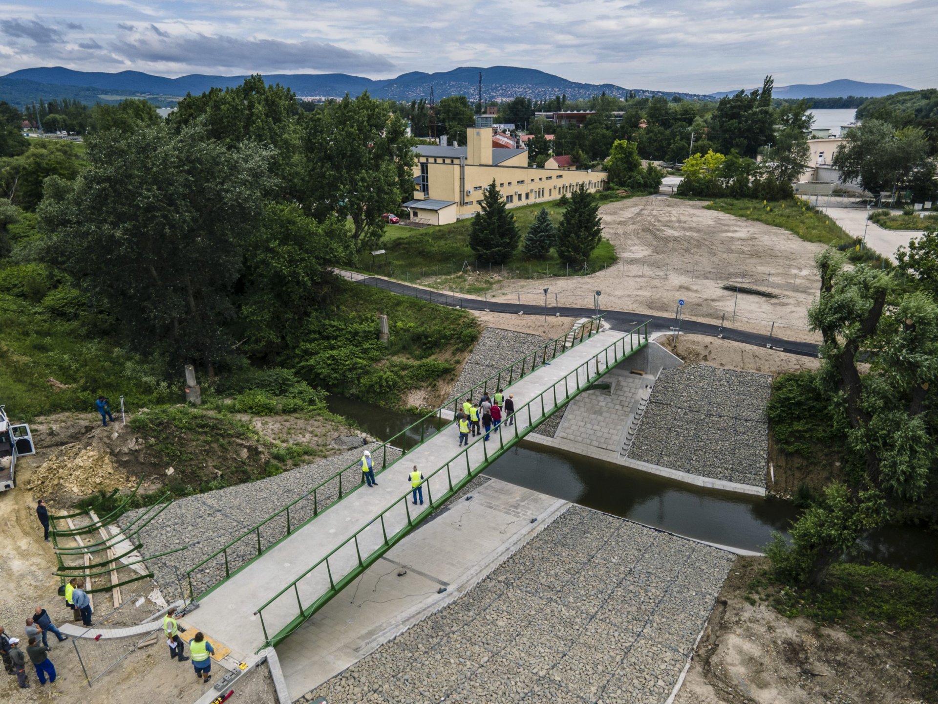 Jól haladnak az EuroVelo 6 Budapest és Szentendre közötti kerékpárút kivitelezési munkálatai. A Dera-patak ártéri területe felett épülő 36 m szabad nyílású új kerékpáros híd próbaterhelése a mai napon valósult meg.