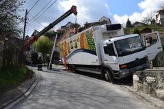 Megbillent egy teherautó rakománya kedd délelőtt a Felsővár utcában Budakalászon. Egy teherautó az útszélén leparkolt, a rakomány oldalra csúszott, ennek következtében a teherautó veszélyesen megbillent. A pomázi önkormányzati tűzoltók a fővárosból érkező tűzoltódaru csörlőjének segítségével a bajbajutott járművet az úttestre visszavontatta, a tulajdonosának átadta. A gépkocsi mirelit árut szállított, ami nem sérült meg és személyi sérülés sem történt.