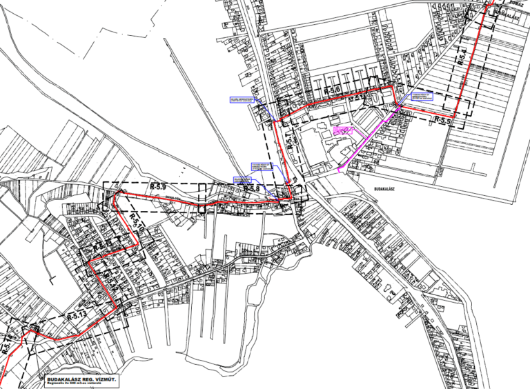 Az új 500 mm átmérőjű gerincvezetéket 11 csatlakozási ponthoz kell eljuttatni ahhoz, hogy a rossz állapotban lévő régi 300 mm átmérőjű vezetéket Budakalászon kiváltsák. Az előzetes tervek alapján a Téglási András utca és a körforgalom közötti (lilával jelölt) szakaszt egy speciális béleléses technológiával tervezi felújítani az állami vízszolgáltató. A Lenfonó csomópontnál az új vezetéket bontás nélkül, sajtolásos technológiával fogják kiépíteni.