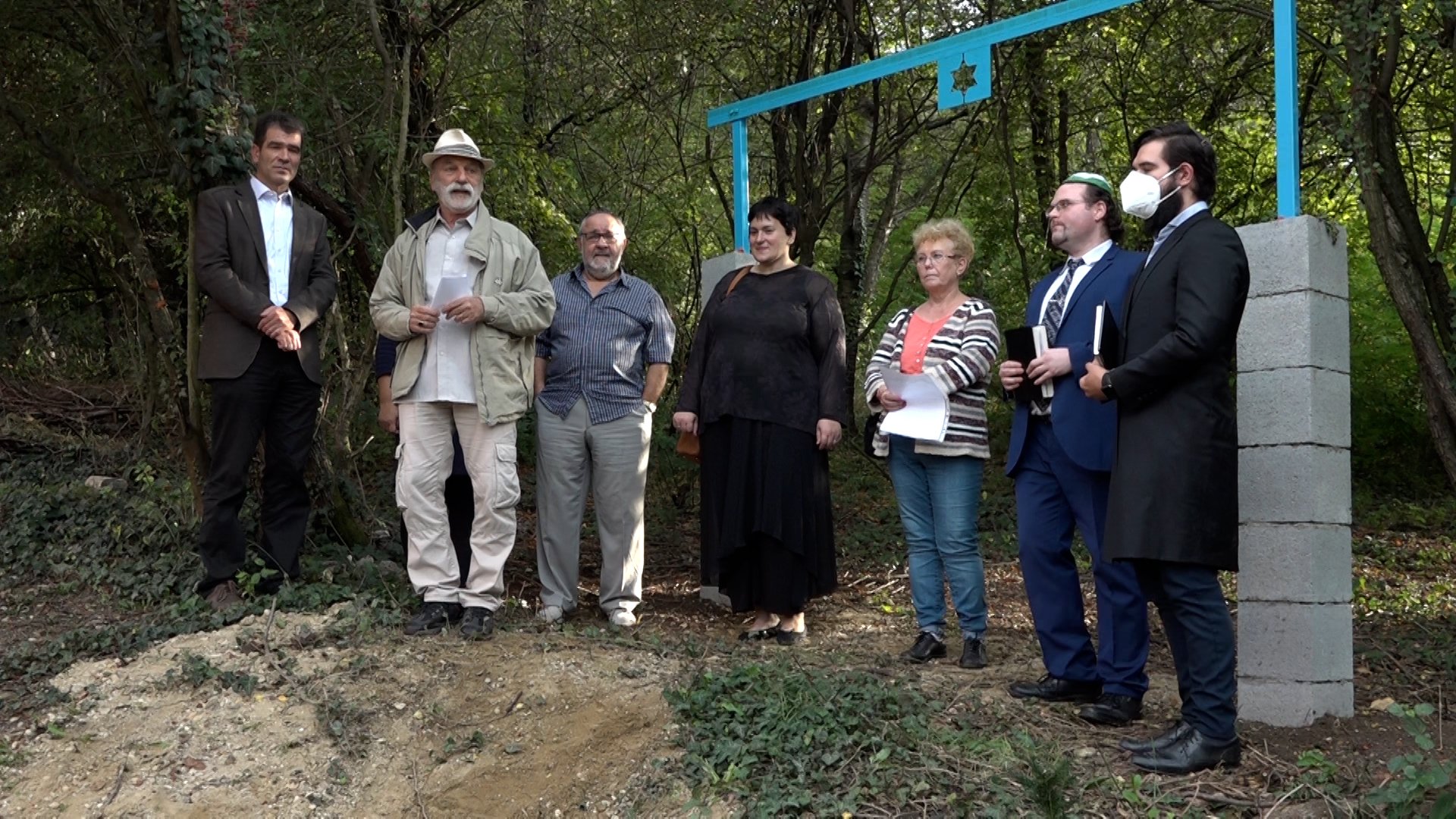 Zsoltár ének csendült fel az avató ünnep és egyben a megemlékezés kezdetén, pénteken délután. A kántor arra is kitért, hogy fontosnak tartja, hogy köszönetet mondjanak Istennek, amiért hagyta megérni ezt a napot ebben a járványos időszakban. „Akinek a nevét egyszer egy évben kimondják, azt nem felejtik el” – így tartja a zsidó vallás. A temető sűrűn körbe van véve fákkal és bokrokkal, de most már az arra járó embernek a figyelmét felhívja a jellegzetes, kék színű kapuív. A hatágú csillagot tartalmazó kapuívet a Társaság tagjai készítették el, és az általuk felkért szakember tervezte meg.