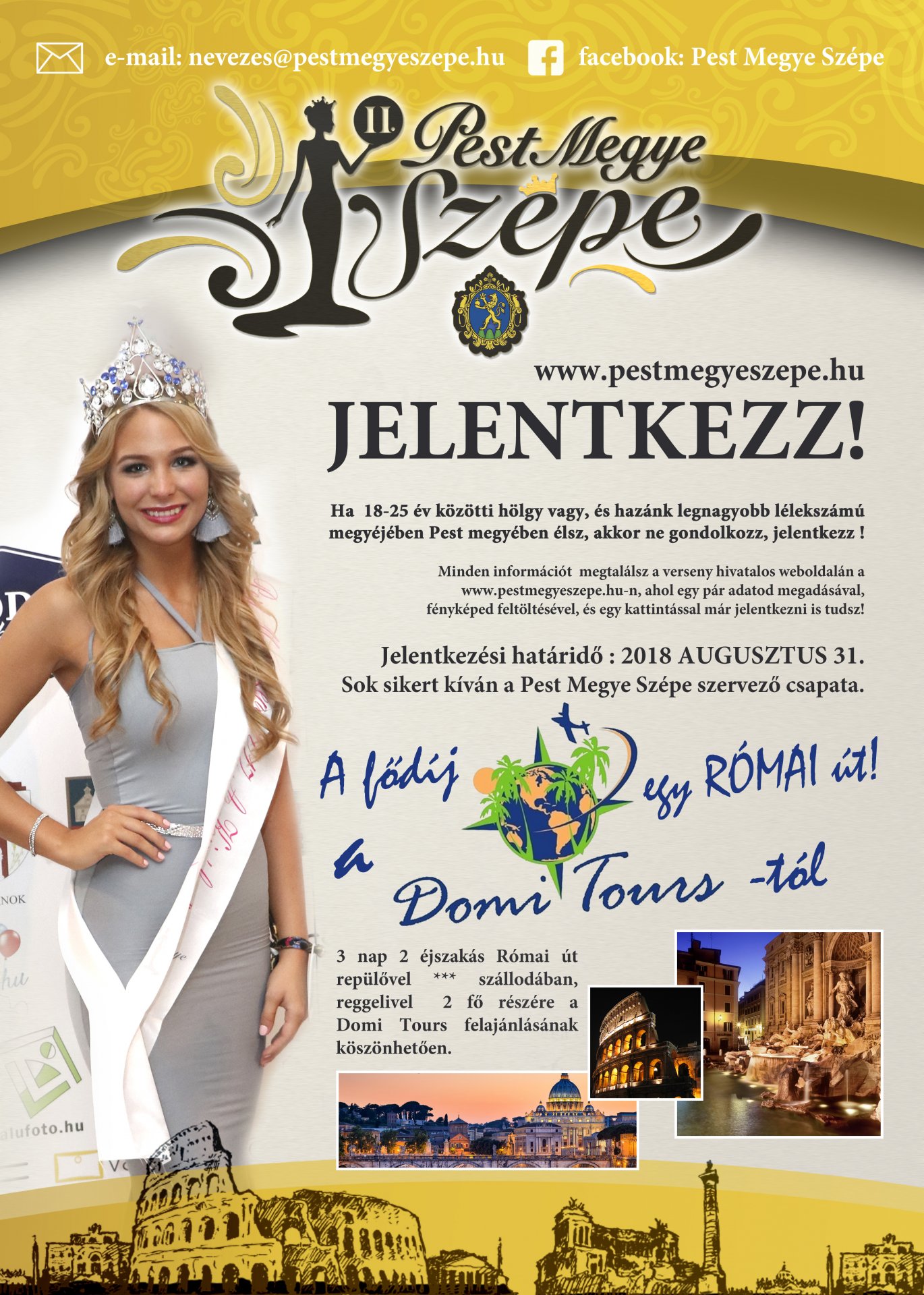 Ekkor hozta létre a versenyalapító-szervező, Bada Zoltán a Pest Megye Szépe versenyt, amelyre hazánk legnagyobb megyéjének már az összes településéről lehet jelentkezni. Az idei határidő augusztus 31.. További részletek az esemény weboldalán.