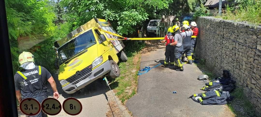 Szintén pénteken koradélután Tahitótfalu településről érkezett a hívás, mely szerint a Villám utcában egy fagylaltos autó tolatás közben felhajtott a meredek padkára és veszélyesen oldalra dőlt, majdnem felborult – írják az egyesület közleményében.