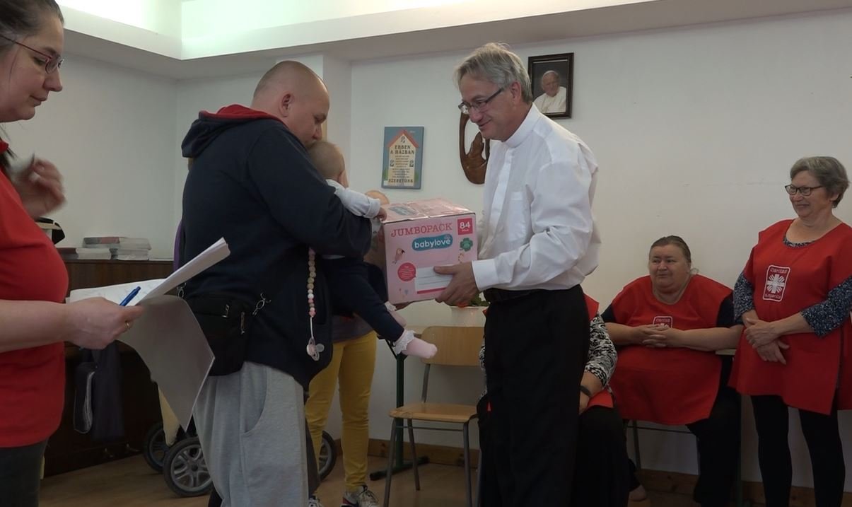 Az Esztergom-Budapesti Főegyházmegye Szent Erzsébet Karitász Központja múlt hét csütörtökön adományozó ünnepséget tartott Szentendrén. Több hónapra elegendő, választható méretezésű pelenkacsomagokkal, babaápolási termékekkel, tápszerekkel és különféle kozmetikumokkal is készültek a szervezők a kisgyermekes szülőknek.