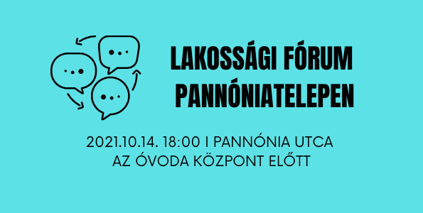 Magyar Judit képviselő a pannóniatelepi őszi lakossági fórumsorozatának negyedik, egyben befejező fordulóját tartja október 14-én a Pannónia utcai Óvodaközpont előtt. A képviselő szeptember-október hónapban eddig három alkalommal tartott lakossági fórumot a körzetében. A fórumsorozat utolsó alkalmán szintén mód nyílik a felmerült problémák megvitatására, illetve a lakosok tájékoztatást kapnak a városrészi költségvetés Pannóniatelepet érintő eredményeiről.