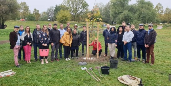 A képen a 14401 Szentendre Business & Fun üzleti közösség faültető tagjai láthatók.