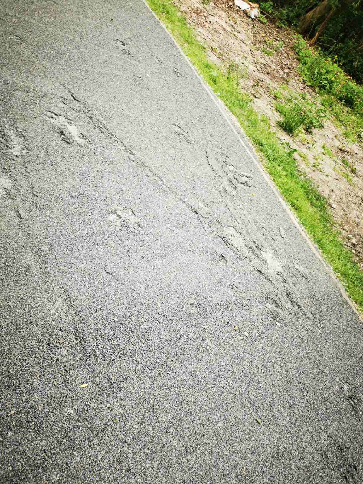 A lezárás, őrzés, kérés ellenére a megkötés ideje alatt többen ráhajtottak kerékpárral, átsétáltak a speciális, erdei környezetben használatos anyaggal frissen burkolt útszakaszon.