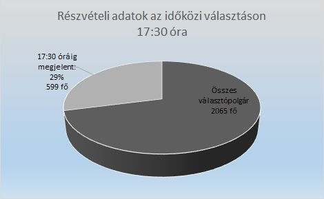 A Helyi Választási Bizottság tájékoztatása szerint 17 óra 30 percig a szavazásra jogosult 2065 választóból, 599-en éltek szavazati jogukkal.