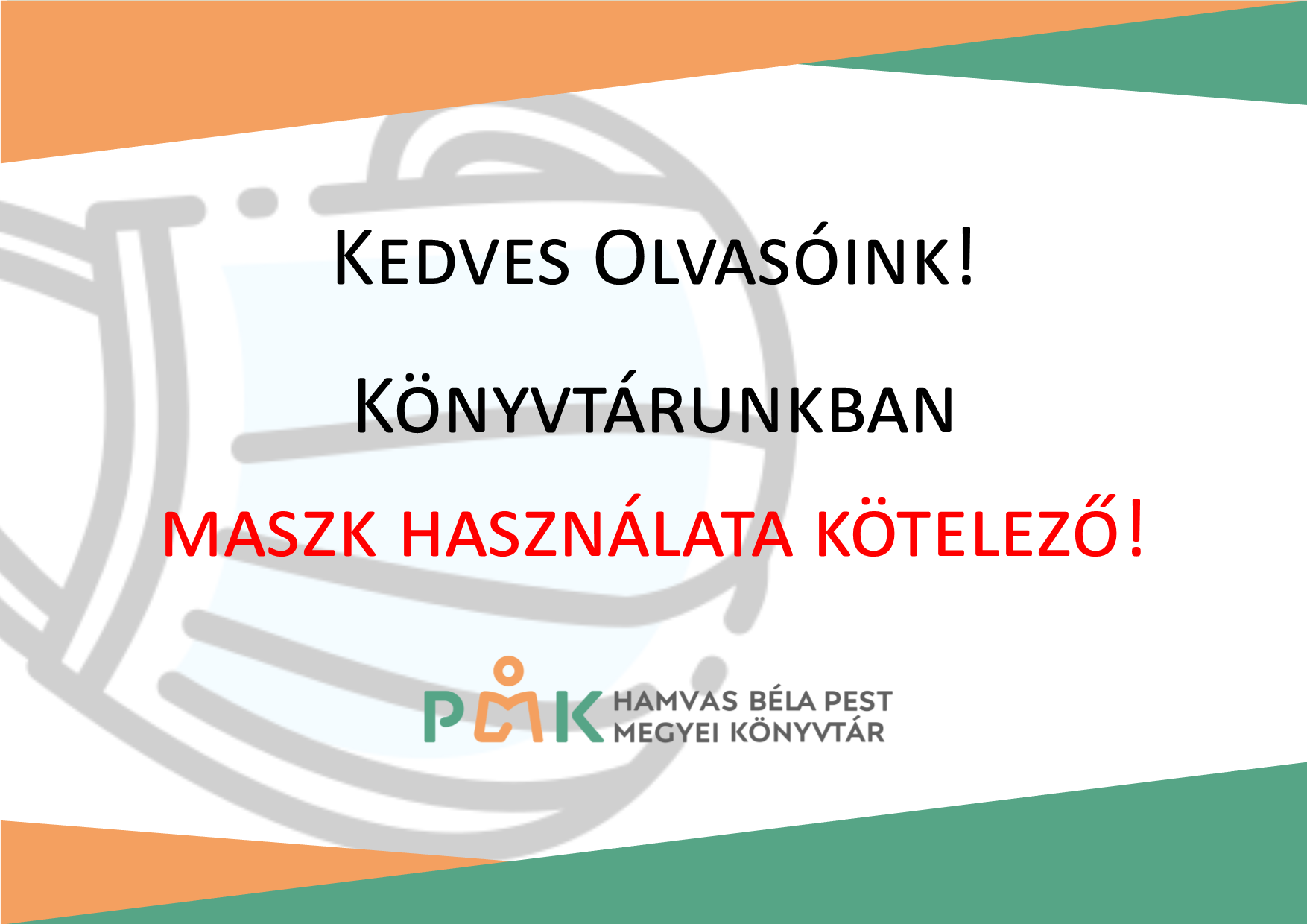 Kötelező a maszkviselés a Hamvas Béla Pest Megyei Könyvtárban hétfőtől. Az intézkedésre a koronavírus terjedésének megakadályozása érdekében kerül sor. A könyvtár a kötelező maszkviselésen túl egyelőre nem vezet be az olvasókat is érintő korlátozó rendelkezéseket.