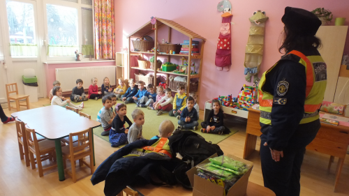 A kis ovisok nagy szeretettel fogadták a rendőröket, akiknek szintén nagy élményt jelentett a kicsik feléjük áradó szeretete. A közlekedési szakterületen dolgozó két rendőrnő játékos formában ismertette a gyerekek számára is fontos közlekedési táblákat, valamint beszélgettek arról is a szüleikkel való közlekedésük során mit tehenek saját védelmük érdekében.