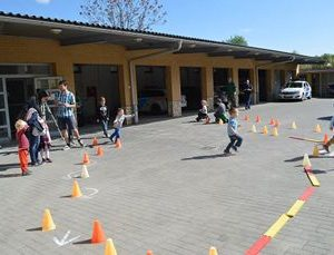 A rendőrök felállítottak egy pályát, melyen szakemberek iránymutatásával motorozhattak és közlekedési táblákkal ismerkedhettek meg.