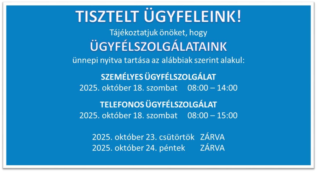 Az online ügyfélszolgálati felületek e időszak alatt is elérhetők, így az ügyek intézése elektronikus csatornákon továbbra is biztosított.